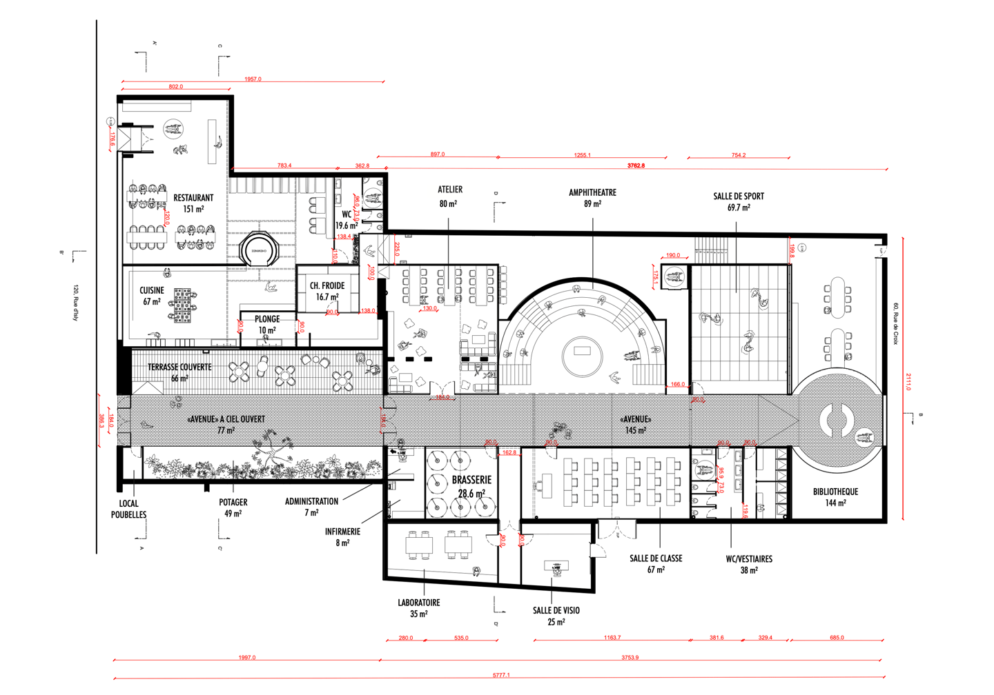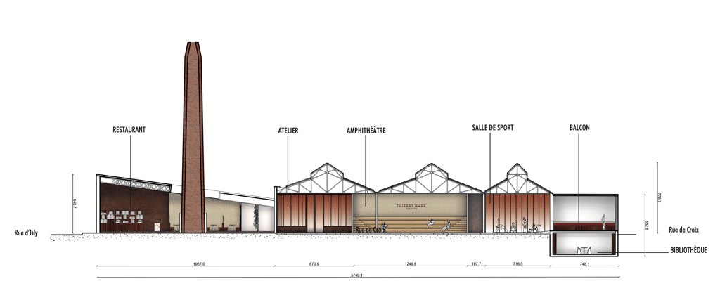 Projet de réhabilitation d'une ancienne usine textile en école de cuisine à Roubaix dans les Hauts-de-France pour le célèbre chef Thierry Marx.