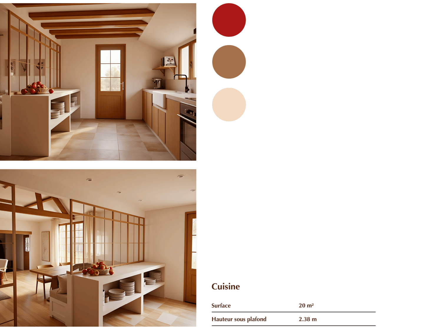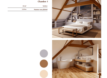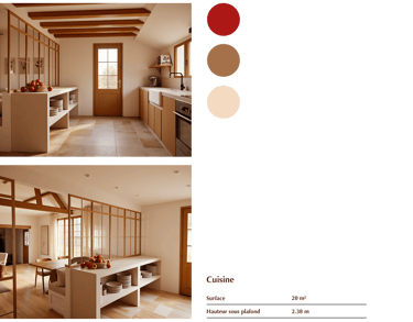 - Rénovation d'une maison de campagne type longère de 99 m² à Sancerre. Création d'un escalier pour aménager les combles en chambre, ouverture du salon en toit cathédrale. -